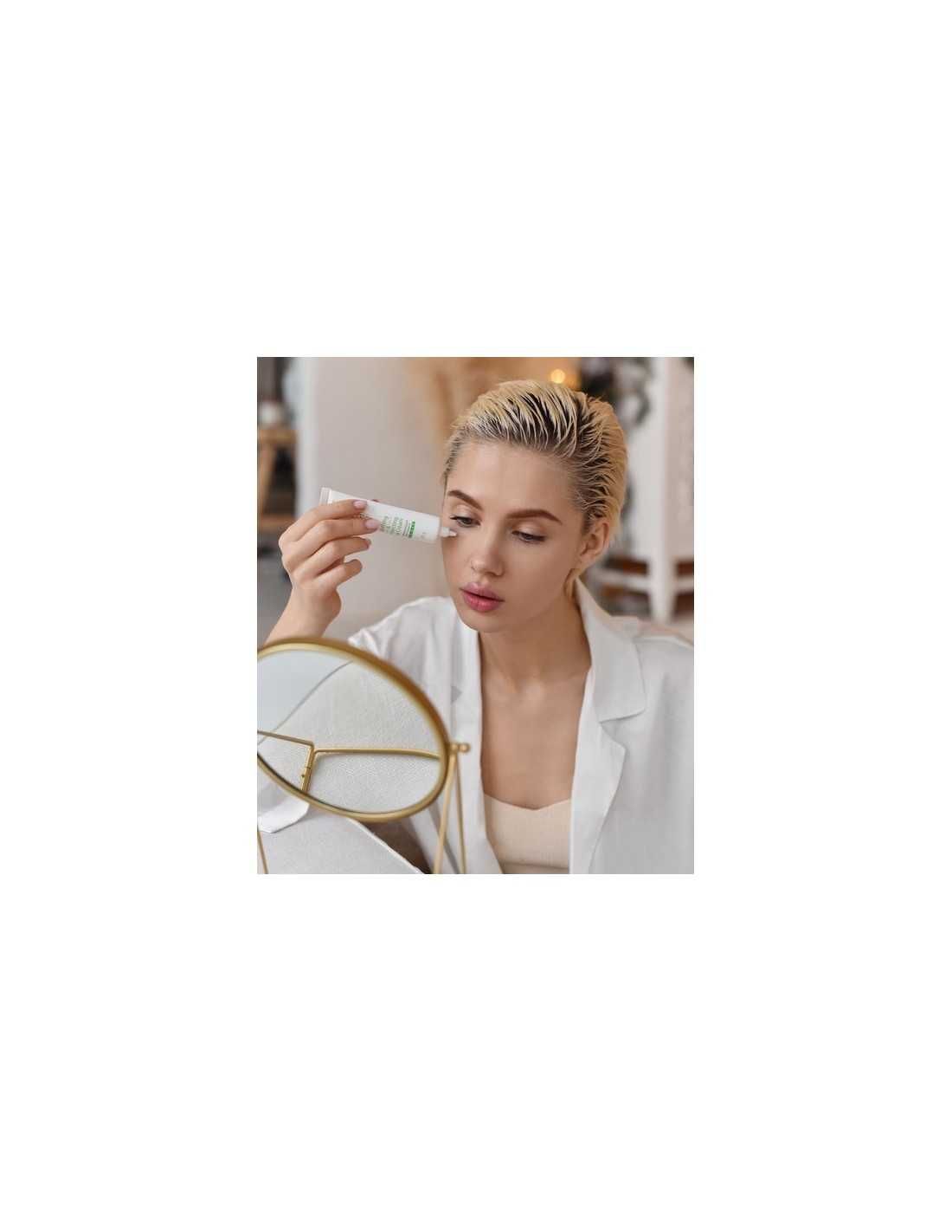 Apply to the area around the eyes with a gentle tapping motion. Use in the morning and evening to increase the effect.