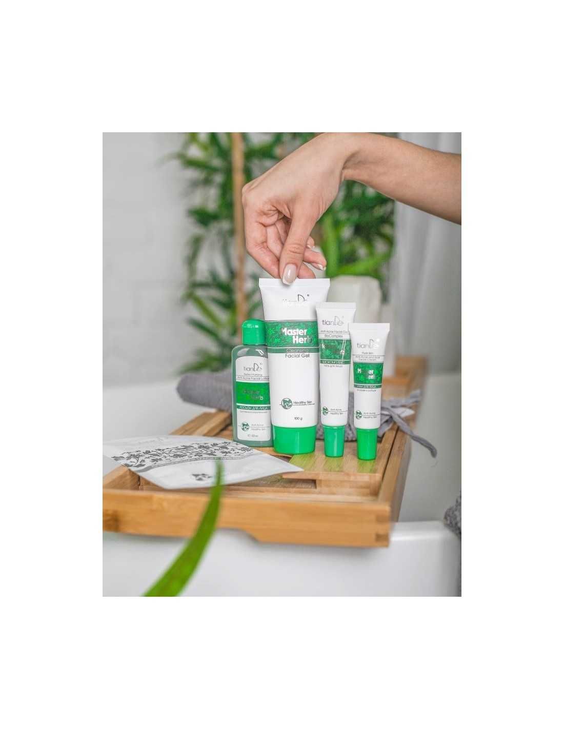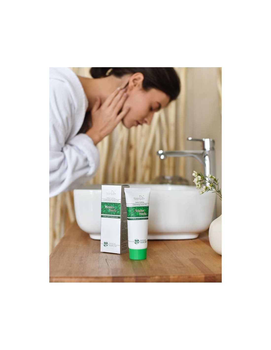 Уникальная формула геля антиакне мягко и эффективно очищает, глубоко проникая в поры кожи, удаляет излишки кожного сала, успокаивает, снимает покраснение. Образует мягкую пену, легко смывается, не высушивает кожу. Для большей эффективности использовать вместе с остальными средствами серии Master Herb.