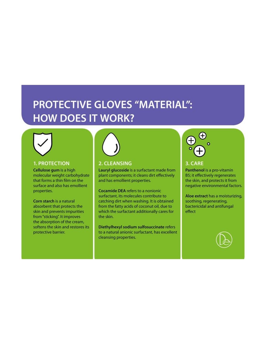 - защищает кожу от воздействия загрязнителей (например, сухой земли), не лишая удовольствия ощущать природный материал;